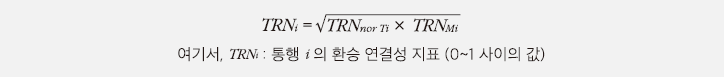 앞서 제시한 환승도보시간과 환승횟수 지표를 기하평균하여 환승 연계성 평가 지표를 제시하였다. 위의 두 지표값을 단순 평균하지 않고 각각의 지표값의 비율을 반영하여 극단적인 값의 영향을 덜 받게 하고자 하였다.